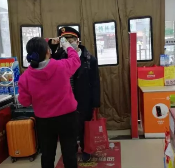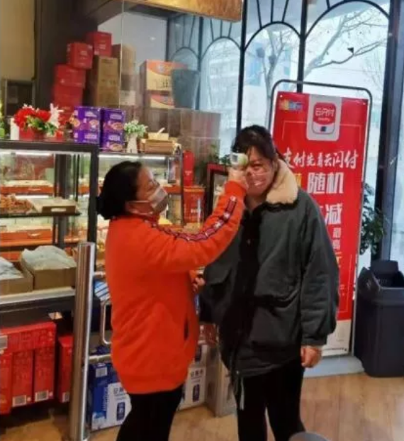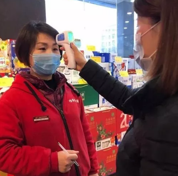 (阜陽(yáng)華聯(lián)疫情期間嚴防控,為員工、顧客測體溫)