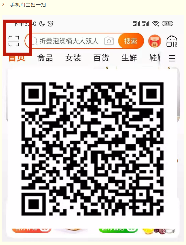 手機淘寶掃描二維碼