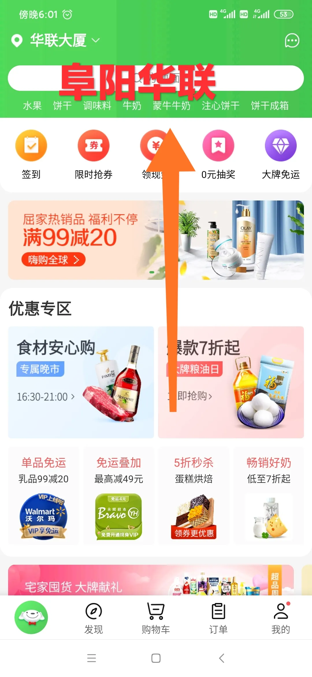 ①掃碼下載京東到家并搜索“阜陽(yáng)華聯(lián)”