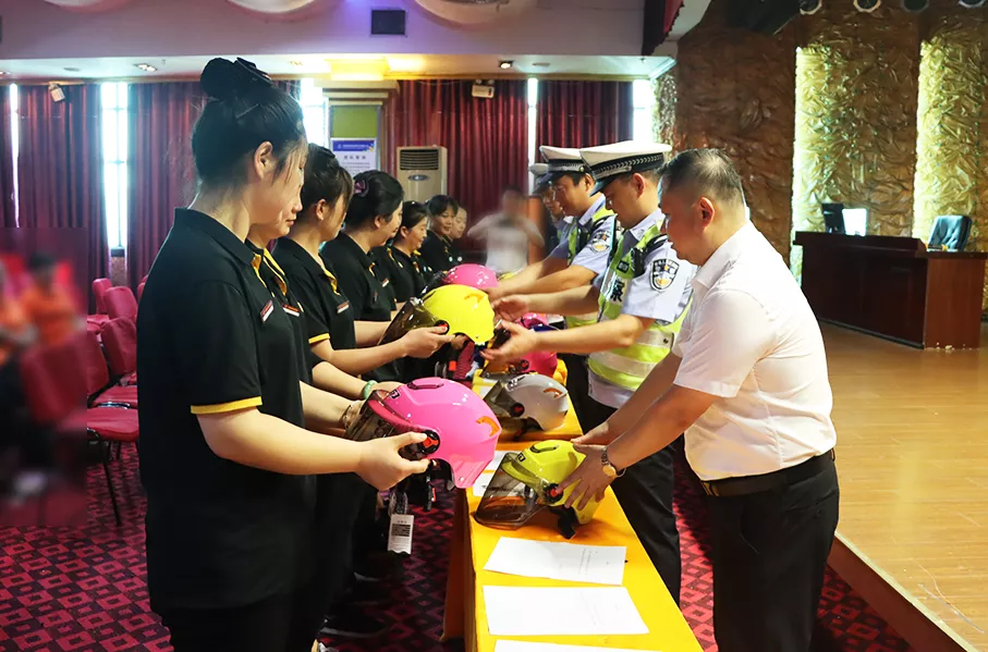 宣講交警結合近年來(lái)在城區、鄉鎮發(fā)生的交通事故進(jìn)行相關(guān)交通法律法規宣講,重點(diǎn)普及安全頭盔的正確佩戴使用可以有效減少交通事故重傷率、死亡率的有關(guān)知識。