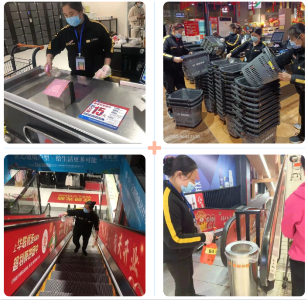 “消殺細節多一點(diǎn),安全防線(xiàn)寬一點(diǎn)”對公共區域的墻角收銀臺角、各層垃圾桶、扶手里側、洗手池等衛生死角也進(jìn)行嚴格地清潔消毒,為市民隔絕傳染隱患。