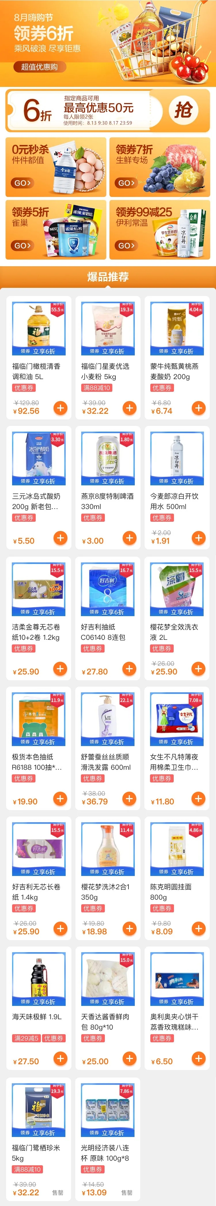 阜陽(yáng)華聯(lián) | 8月多點(diǎn)線(xiàn)上嗨購節火熱來(lái)襲~6折神券,0元秒殺爆品,7折生鮮,越購越嗨皮!
