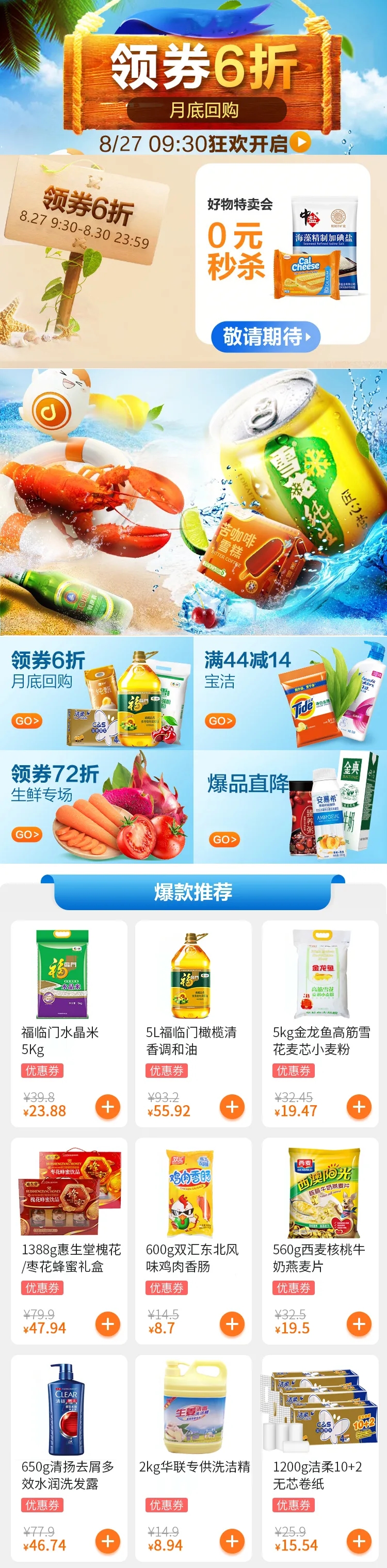 【七夕過(guò)后,月末回血福利】阜陽(yáng)華聯(lián)多點(diǎn)線(xiàn)上活動(dòng),領(lǐng)券6折,秒殺直降!想你所想,給你所需??!