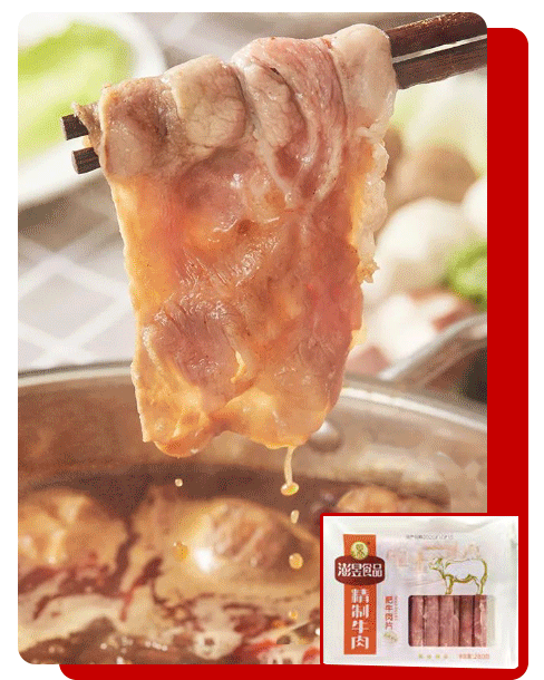 澎昱精制肥牛片,肥瘦相間,有著(zhù)漂亮的大理石紋理,色澤絕了,煮后也不散!