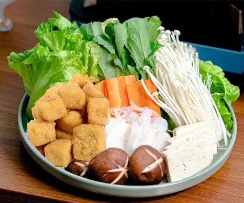 新鮮脆嫩的油麥菜、生菜,噴香的豆腐泡,還有網(wǎng)紅金針菇,解膩又滿(mǎn)足。